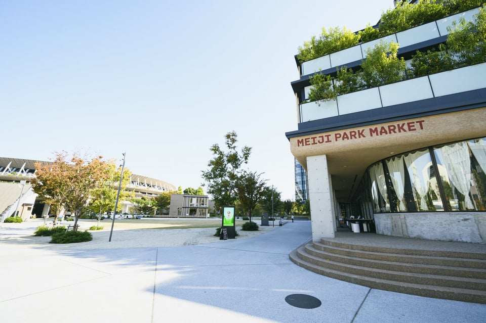 東京都が初めて「Park-PFI(公募設置管理制度)」を導入し、2023年に開園した都立明治公園へ。Tokyo Legacy Parksと共同で整備・運営を行う約16,000㎡の敷地内に、カフェや植樹スペース、芝生広場、レインガーデン、そして障がいの有無や年齢にかかわらず誰でも使うことができるインクルーシブ遊具を備えた広場が設置されています。