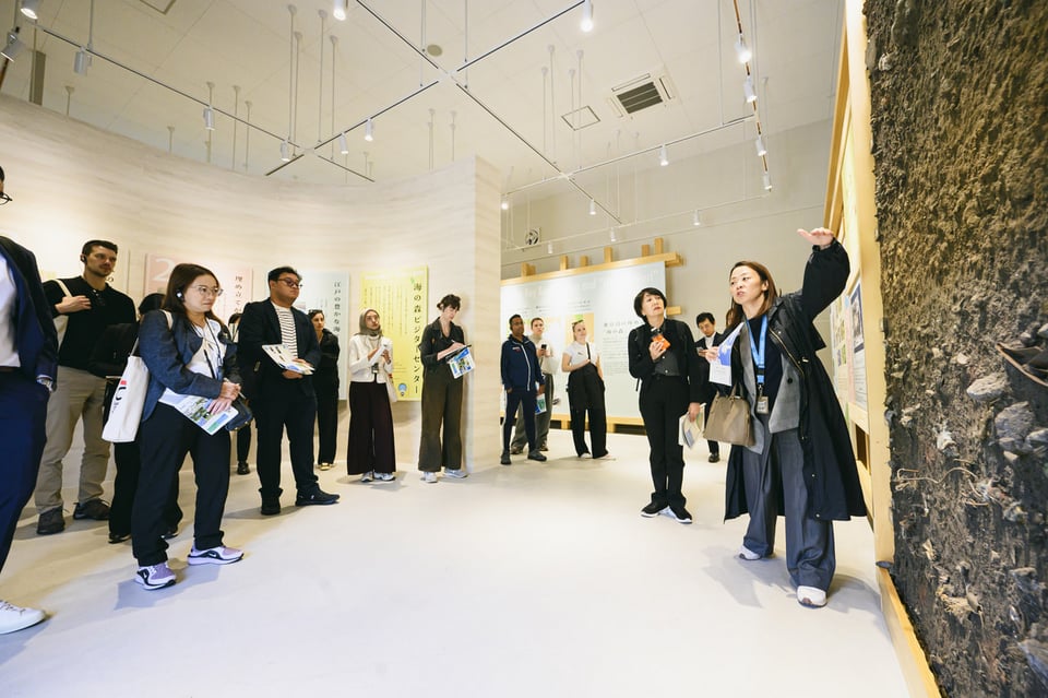 公園内にある海の森ビジターセンターでは、港湾局の職員が1,230万トンのごみの埋め立て地を多様な生き物が生息する森へ生まれ変わらせるプロジェクトの内容や公園の成り立ちを解説しながら、参加者を案内しました。