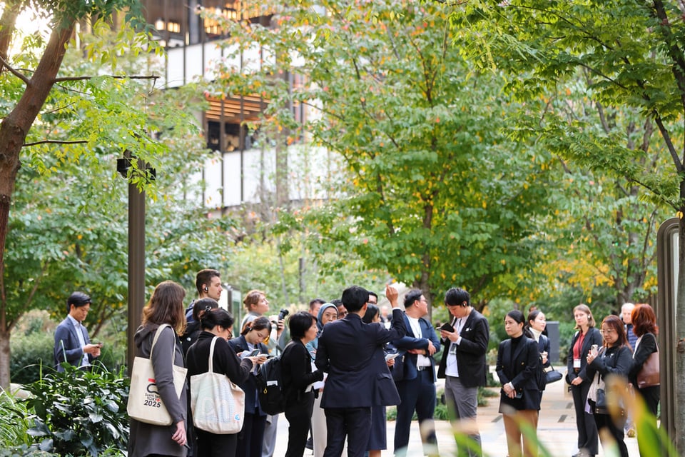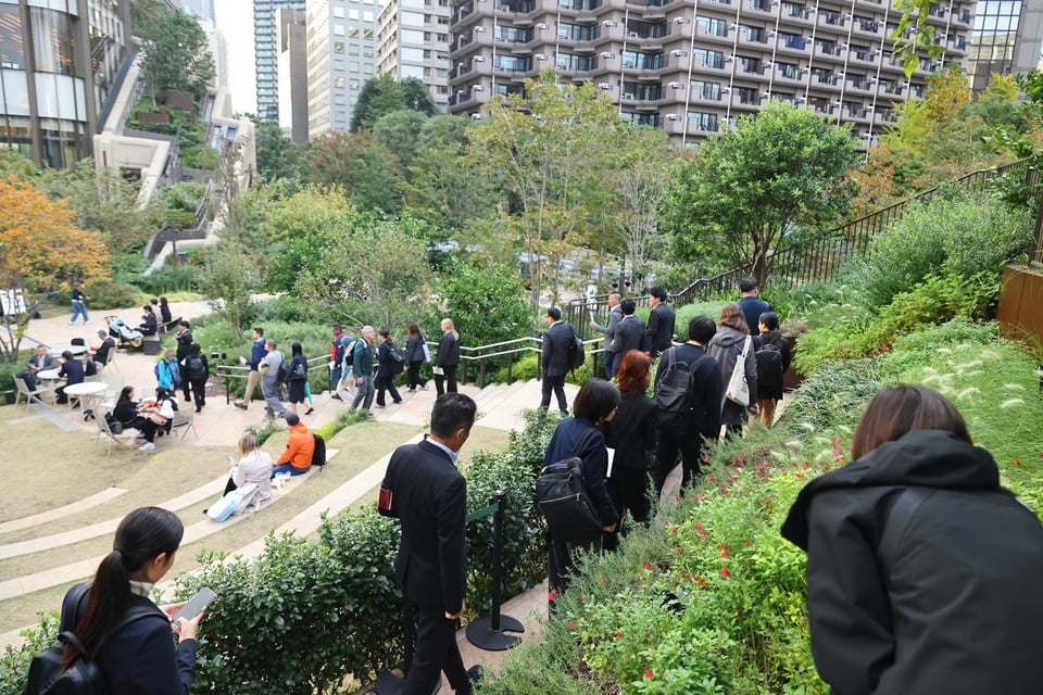 2025年11月6日から7日の2日間、G-NETSワーキンググループ共同プロジェクトの一環として、東京都における都市緑化をテーマとした視察が開催され、世界10都市の実務担当者が参加しました。1日目はおおはし里の杜と麻布台ヒルズ、2日目は都立明治公園と海の森公園などを見学し、視察後には意見交換が行われました。