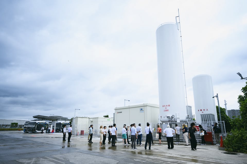 燃料電池バスの重要なインフラ拠点となるのが、2025年4月に都営バスの有明自動車営業所内にオープンした岩谷コスモ水素ステーション有明自動車営業所だ。バス営業所内に併設の水素ステーションとしては日本初となる。