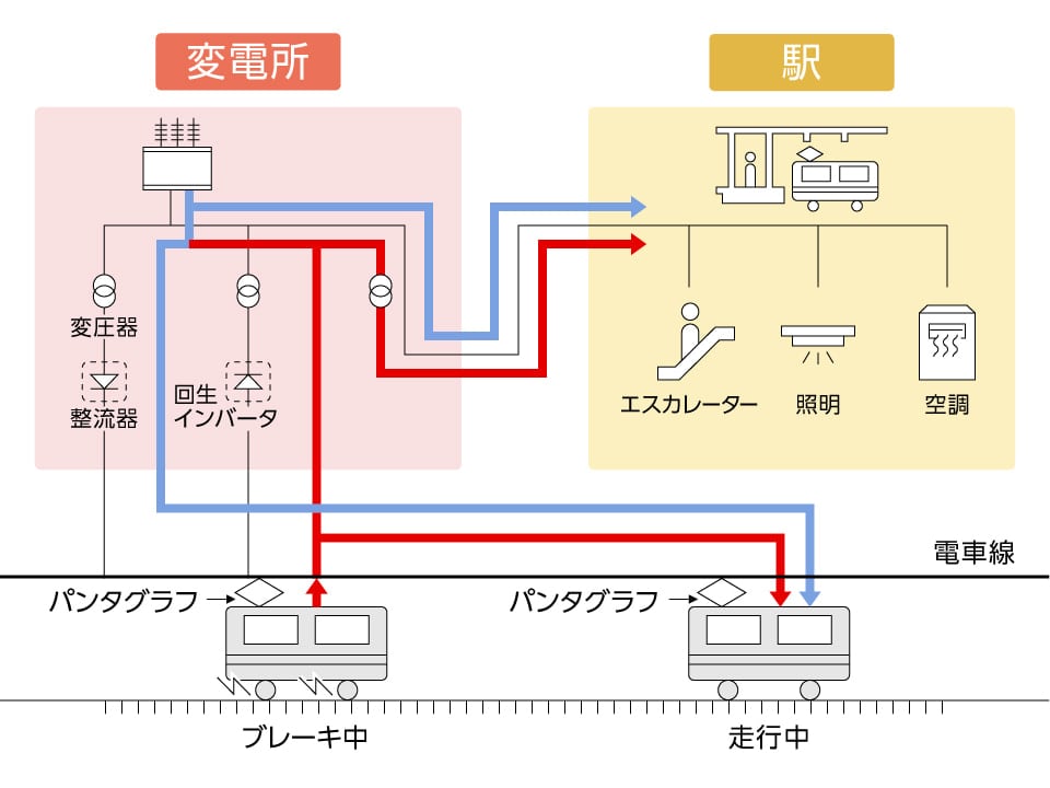 都営大江戸線では、地下鉄のブレーキを電力に変換して再利用
